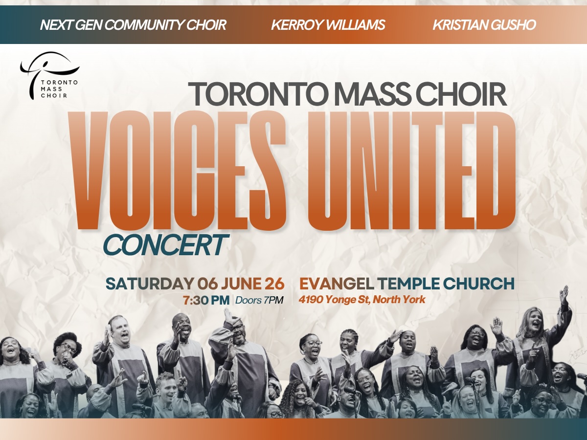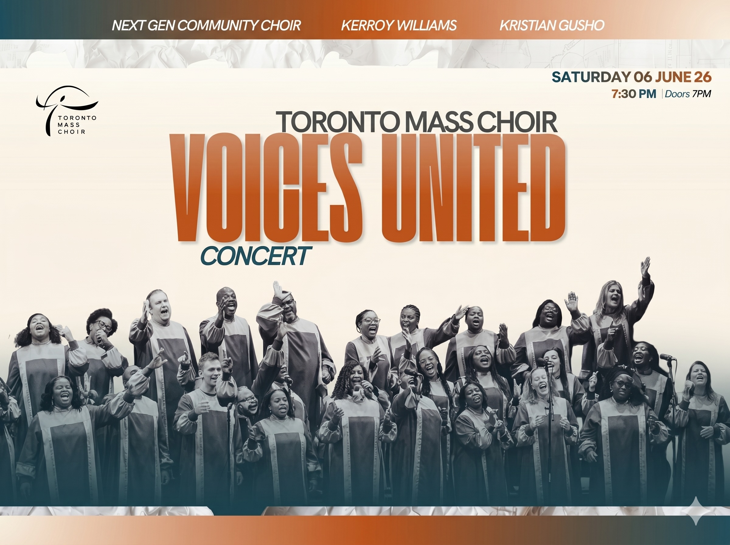 The Toronto Mass Choir (TMC) continues to be on the cutting edge of the Canadian gospel music scene bringing its distinct gospel sound to the world stage. Now 40 members strong plus a five-piece band, this not-for-profit choir consists of adult members from various local church denominations across the Greater Toronto Area.