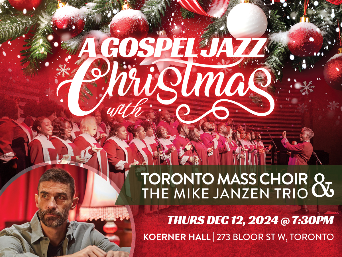 Usher in this holiday season as the Juno award-winning Toronto Mass Choir joins forces with the incredible Mike Janzen Trio for a truly memorable night of festive music. This uplifting concert will blend the soulful harmonies of gospel with the vibrant sounds of jazz, creating a stunning night of holiday music. This encore performance of A Gospel Jazz Christmas will feature soul-tapping classics, heart-warming originals, and brand new arrangements sure to flood the prestigious Koerner Hall to the rafters. The Toronto Mass Choir, known for its powerful gospel performances, will be joined by Juno award-winning Canadian jazz artist Laila Biali, gospel vocalist Latoya HD, and the Toronto Beaches Children's & Youth Chorus. This event also marks the the official launch of the Mike Janzen Trio’s highly-anticipated Christmas album, Carols (Vol. II).